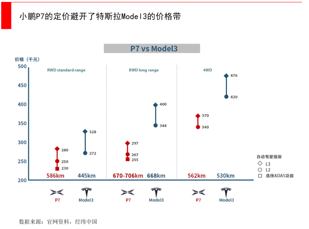 小鵬的定位就是這么清晰,它可能并不奢華,但針對的就是高性價比市場,它的定價整體低于特斯拉、蔚來和理想,產品力體現在續航和智能上,P7是目前續航里程最高的純電量產車型之一。