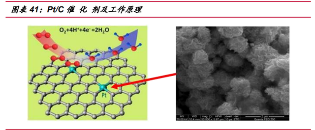 在降低催 化劑成本的方面,目前有兩條路徑,一條是降低鉑的使用量,另一條 則是研發非鉑催 化劑,兩者都已有所進展。鉑使用量的降低現在已有所成效,縱觀 燃料電池發展史,每平方厘米需要的鉑已經從最初的 50mg 降低到了現在的不足 0.2mg。而非鉑催 化劑也在研究中,雖然無鉑催 化劑尚未進入工業應用的階段,但 很可能是未來大幅降低燃料電池成本的關鍵。