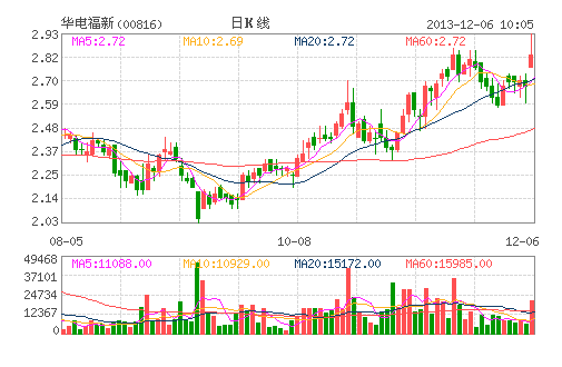 新能源股今日受追捧,其中華電福新(00816)大升7.5%,兼高見2.93元破頂?,F漲4.85%,報2.81元。