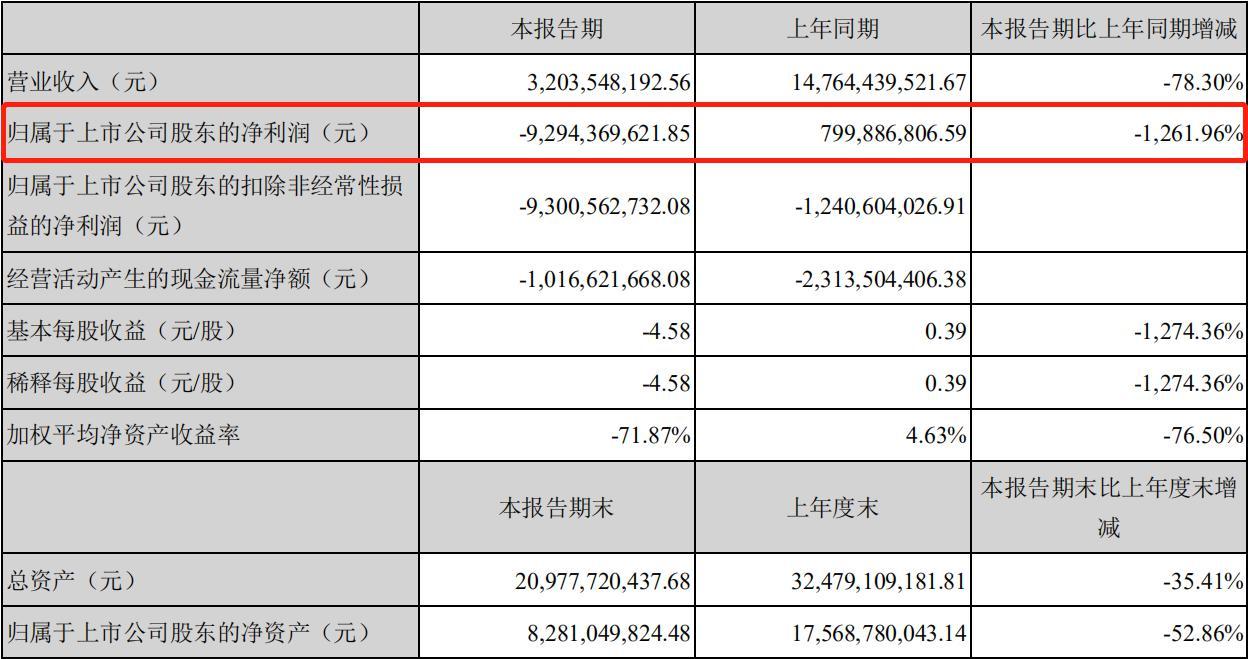 據眾泰汽車2019年業績報告,公司全年營業收入32.04億元,較2018年的147.64億元下滑78.3%;凈利潤為-92.94億元,較2018年同期的8億元下滑1261.96%;現金流凈額為-10.17億元。