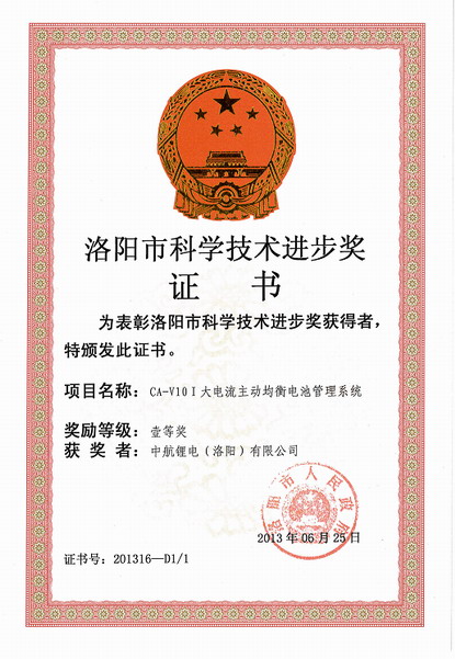 近日,中航鋰電四項科技成果成功獲得洛陽市科學技術進步獎,其中,“CA-V10Ⅰ大電流主動均衡電池管理系統 ” 和“ 高可靠性CA60FⅠ鋰離子動力電池 ” 兩項科技成果獲得洛陽市科學技術進步