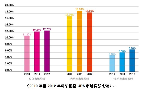 科華恒盛在以科學技術帶動產業發展的策略上,將企業自身產品方案應用到全球70多個國家和地區,覆蓋歐洲、美洲、亞洲、非洲等地。為全球超過20萬用戶提供可靠的電源服務。銷售額連續十五年位居國產品牌第一位,據2013年3月賽迪顧問發布報告顯示:2012年,科華恒盛銷售額在所有國內外品牌中位列第四,居國產品牌首位;20KVA以上中大功率UPS市場份額達到18.5%,在所有國內外品牌中排名第三,在本土品牌中遙遙領先,穩居首位,并以絕對優勢成為中國電源行業的領跑者。