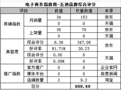 電商指數(shù)榜排名第三:五迪