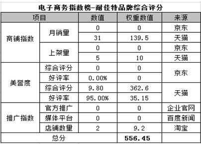 電商指數(shù)榜排名第四:耐佳特