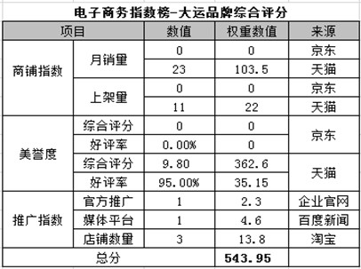 電商指數(shù)榜排名第五:大運