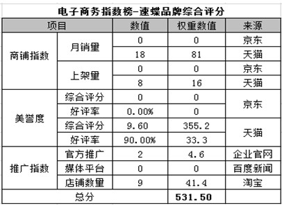 電商指數(shù)榜排名第七:速蝶