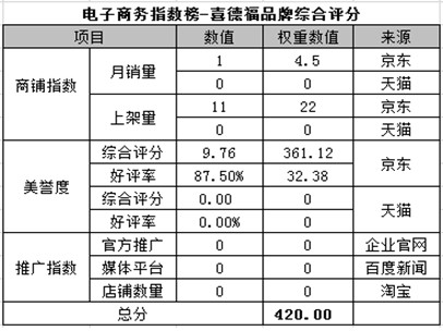 電商指數(shù)榜排名第九:喜德福