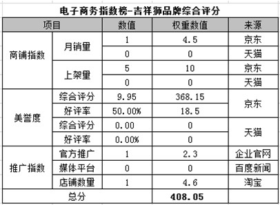 電商指數(shù)榜排名第十:吉祥獅