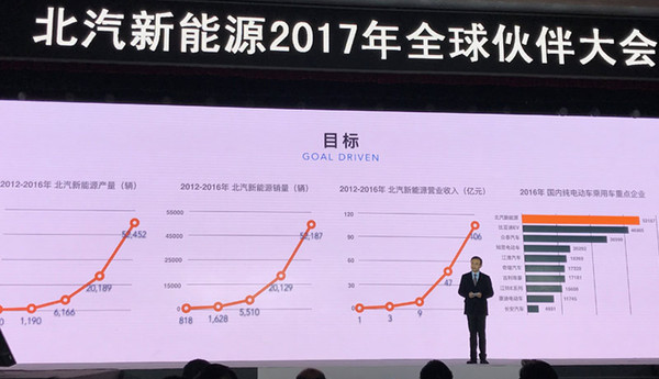 2016年全年,北汽新能源累計銷量為51,559輛,同比增長156%。而隨著新車的不斷投放以及整體新能源市場“欣欣向榮”的發展,北汽新能源也將今年目標提至17-20萬輛。對于這樣大的跨度,北汽新能源也給出了自己的解釋。