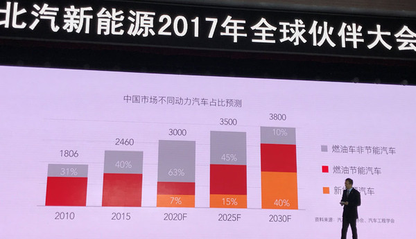 鑒于這樣大好的市場(chǎng)前景,鄭剛還為未來(lái)汽車市場(chǎng)做了一個(gè)占比推測(cè)。可以看出,到2030年,新能源汽車市場(chǎng)占比將超過燃油車非節(jié)能汽車。