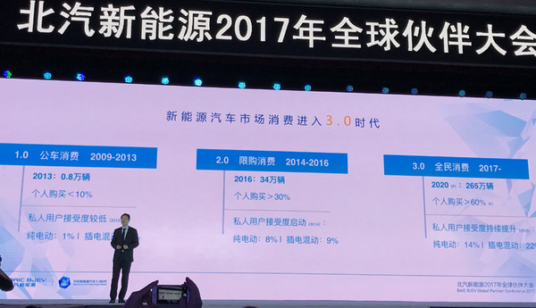 對(duì)于新能源3.0時(shí)代,北京新能源股份有限公司副總經(jīng)理張勇對(duì)新能源市場(chǎng)的消費(fèi)也做了一個(gè)推測(cè)。他指出,到3.0時(shí)代,新能源汽車將變成全民消費(fèi)。也就是從2017年開始,到2020年,新能源汽車銷量將達(dá)265萬(wàn)輛,其中個(gè)人消費(fèi)占比將大于60%。