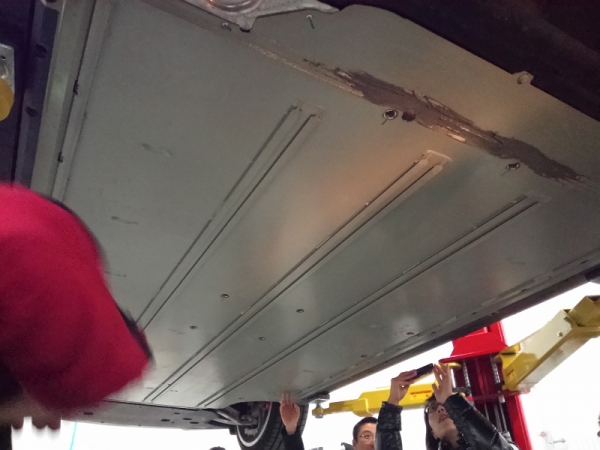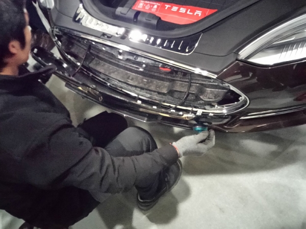 在經(jīng)歷幾起底盤著火事故后,特斯拉改良了底盤的安全層級。這是在鋼板前部加裝的防撞梁。