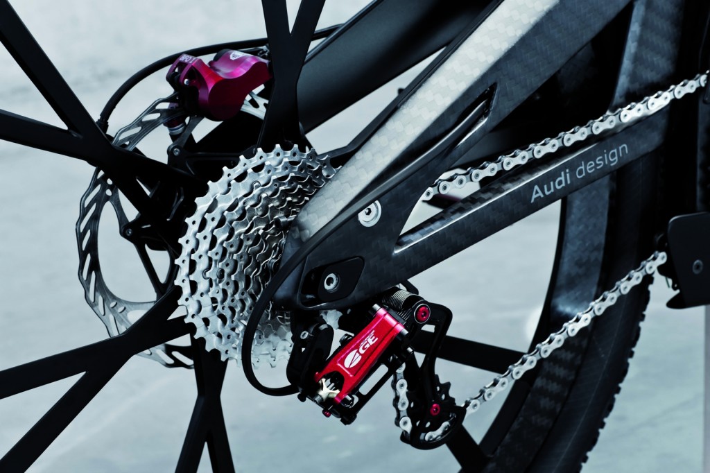 Wrthersee的車架裝有LED燈,可形成奧迪特有的“光影簽字”圖案。如果想表演高難度動作,用戶可以降低車座高度,與車架齊平。只需按一下按鈕,車座便可提升高度,供騎行者選擇一個舒適的姿勢。騎行模式和其他功能均可利用車載觸摸屏電腦控制。慕尼黑概念設(shè)計工作室設(shè)計師亨德里克-斯查菲斯表示:“在設(shè)計Wrthersee時,我們遵循了賽車的設(shè)計原則。這款電動自行車擁有非常有色的性能。在設(shè)計上,我們力求將其打造成一個運動機器,而不是一輛普通的自行車。”