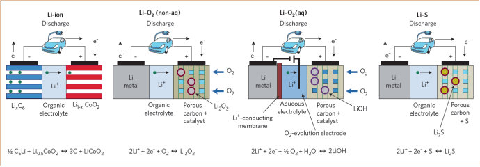 盡管目前鋰離子電池還有發展潛力,從長遠來看對電動汽車來說還是遠遠不夠。無論如何必須尋找其他類型的電池。綜觀現在各類電池的研究進展,普遍認為鋰空氣和鋰硫電池有比較大的潛力。