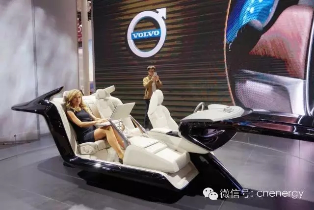 沃爾沃S90 Excellence Interior全新概念車內飾全球首發,采用2+2座椅布局。后排座椅具備通風及按摩功能,此外,該車還裝配有可伸縮的觸摸屏幕、小桌版、冰箱以及隨車贈送的水晶杯。圖中“白富美”正在體驗。