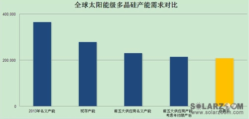 圖1: 2013年全球太陽能級多晶硅供需對比(數據來源: IHS Solar光伏供應鏈報告)