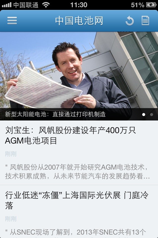 【本網(wǎng)訊】在中國電池網(wǎng)上線兩周年之際,中國電池網(wǎng)手機(jī)客戶端(下載地址:http://m.honglaili.com/about/app.html)同步升級,讀者期待的列表頁新增了焦點(diǎn)圖輪播功能。昨日(18日)已編譯上線,讀者可更新下載安裝閱讀。