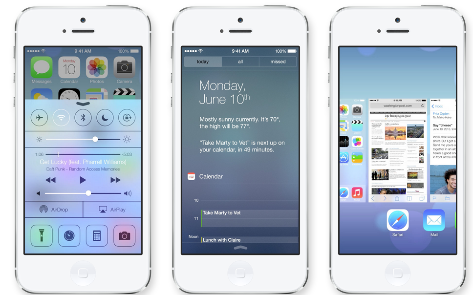 蘋果的iOS系統(tǒng)運(yùn)行在iPhone、iPad和iPod touch等產(chǎn)品上。對(duì)這一系統(tǒng)的改動(dòng),是周一發(fā)布會(huì)的重頭戲。庫克稱iOS 7“是iPhone誕生以來變化最大的一套系統(tǒng)。”靠設(shè)計(jì)主管喬尼·艾弗(Jony Ive)團(tuán)隊(duì)操刀,該系統(tǒng)憑借新的色調(diào)和更活潑的背景,帶來了一個(gè)讓人耳目一新的外觀。像木質(zhì)書架等老iOS用戶熟悉的視覺效果已經(jīng)被舍棄了。