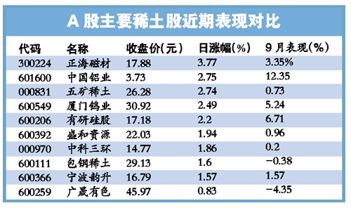 昨日這些個股也都跑贏大盤,其中,五礦稀土上漲2.47%,包鋼稀土也收高1.60%,中國鋁業則上升2.75%。
