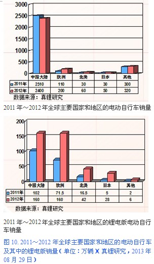 在電動自行車這個領域,鋰離子電池正在快速取代鉛酸電池,速度可能超出了業內大多數人的預計。真鋰研究的數據顯示,2012年全球鋰電版電動自行車銷量達到396萬輛,是2011年197萬輛的一倍以上。歐洲地區銷售的電動自行車基本上都是鋰電版電動自行車,而且,消費人群存在由老年人為主向年輕人為主的發展趨勢,這強力推動了歐洲市場的發展,使得歐洲2012年已發展成為和中國大陸并列的全球最大的鋰電版電動自行車市場。