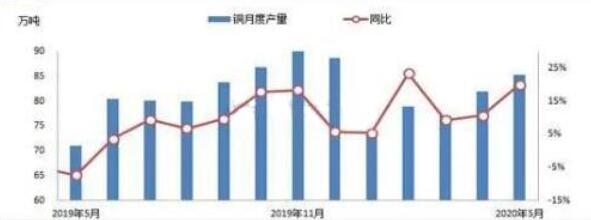 據(jù)上圖所示,企業(yè)產(chǎn)量供應(yīng)相對(duì)穩(wěn)定,數(shù)據(jù)顯示,2020年4月國(guó)內(nèi)電解銅冶煉總產(chǎn)量為81.975噸,而5月銅產(chǎn)量増加至35.3萬(wàn)噸,同比増加19.97%,市場(chǎng)沒(méi)有必要擔(dān)憂(yōu)供應(yīng)問(wèn)題。