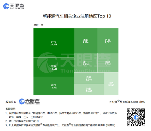 天眼查數(shù)據(jù)顯示,我國(guó)目前經(jīng)營(yíng)范圍含“新能源汽車、電動(dòng)汽車、插電式混合動(dòng)力汽車、燃料電池汽車”的企業(yè)(以下簡(jiǎn)稱“新能源汽車相關(guān)企業(yè)”)超過14萬家。從地域分布上看,我國(guó)新能源汽車相關(guān)企業(yè)數(shù)量最多的省份分別為廣東省、江蘇省和山東省,三省企業(yè)數(shù)之和約占全國(guó)的三分之一。湖南、河南、浙江、福建等省份和地區(qū)的企業(yè)數(shù)量緊隨其后。