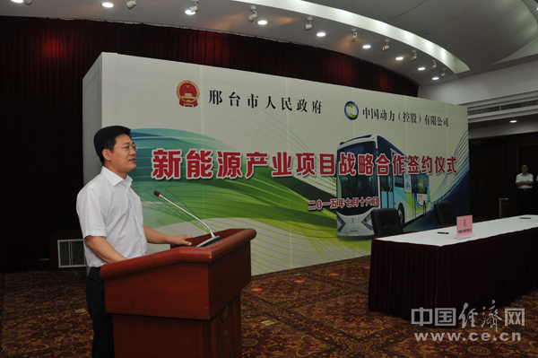 7月16日,邢臺市政府與香港中國動力(控股)有限公司就新能源產(chǎn)業(yè)項目簽署戰(zhàn)略合作框架協(xié)議。簽約會上,中國動力集團將生產(chǎn)的第一臺采用高功容比三元聚合物鋰能電源驅(qū)動的純電動巴士交付邢臺市人民政府進行試運行。