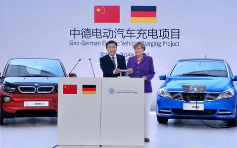 就在上個星期,在清華大學校園內,在中國訪華期間的德國總理默克爾、與工信部部長苗圩一同出席中德電動車充電項目儀式。同時,戴姆勒大中華區(qū)CEO唐仕凱、寶馬中華區(qū)總裁安格、華晨寶馬總裁兼首席執(zhí)行官康思遠、比亞迪董事長王傳福以及騰勢品牌CEO廉玉波等與德國電動車話題相關的企業(yè)人士,悉數(shù)到場。