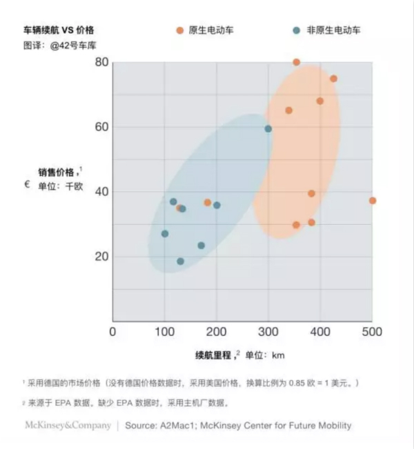 標桿車型分析顯示,基于原生平臺的電動車和基于內燃機平臺的電動車,在續航里程和內飾空間上有著明顯的差距。前者可以使電池的模塊設計達到最優狀態,后者需要讓電池適應內燃機平臺上尷尬的空間,從而限制了電池能量密度的提升。