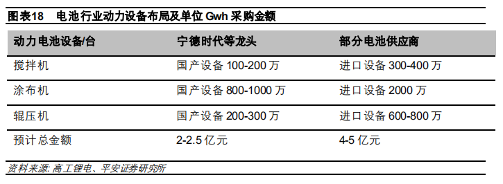 龍頭供應商在設備開發和工藝上積累深厚。在工藝和制造設備端,動力電池制造要求符合車規級的 標準,而且由于其本身的高能量密度屬性,和易燃易爆炸的屬性,對于動力電池的制造要求就更加 的嚴格,所以動力電池的龍頭供應商在設備制造工藝方面積累了長時間的 know-how,具備自己的設備開發部門,可以更好的控制制造工藝及整合全產業鏈利潤。