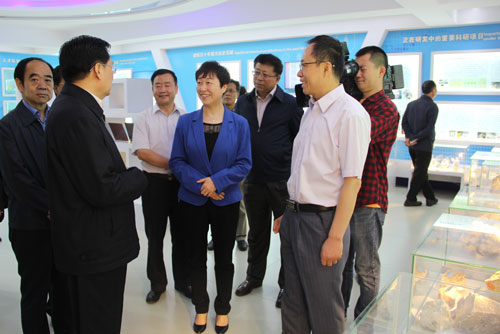 王國生認(rèn)真聽取介紹,不時詢問有關(guān)情況。在匯報交流過程中,王國生對青海鹽湖所在鹽湖科技事業(yè)和鹽湖資源調(diào)查與開發(fā)取得的成績給予了充分肯定。他指出,青海鹽湖所地處高原、條件艱苦,鹽湖科技事業(yè)的不斷發(fā)展是幾代鹽湖科技工作者艱苦奮斗、不懈努力的結(jié)果。正是靠著這種“鹽湖精神”,幾代鹽湖科技工作者圍繞國家戰(zhàn)略需求和青海地方經(jīng)濟(jì)社會發(fā)展需要,為鹽湖科技事業(yè)、鹽湖資源的開發(fā)和綜合利用做出了重要貢獻(xiàn)。