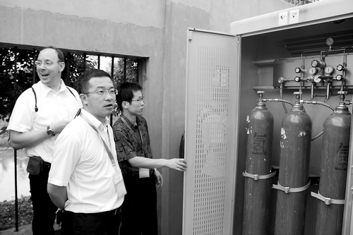 一人多高的長方體大柜子,上面標注著電流、電壓和功率等字樣,3、4個這樣的柜子間隔擺開,還有一個共同的名字:燃料電池發動機測試平臺。在這些機器不遠處的一個小實驗室里頭,地上布滿管線,風扇高速運轉散熱,所有的管線都連接在一個黑色的大家伙身上,那是用來發電的燃料電池。在機器的轟鳴聲中,是實驗室外頭停放的一輛輛電動車,有的是2010年上海世博會時的示范車輛,它們使用的都是燃料電池。