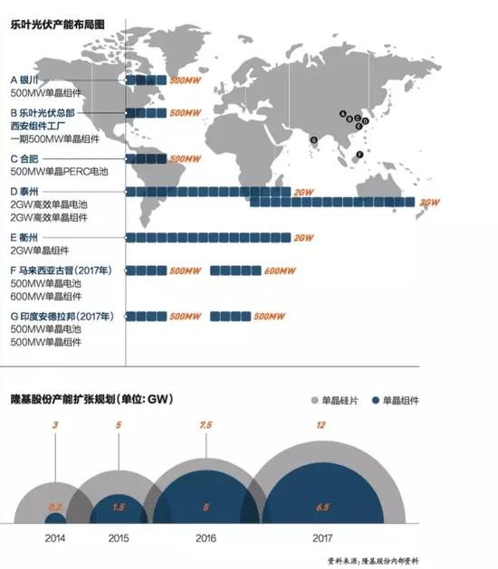 在想通了之后,隆基股份開始大規(guī)模布局下游,首先是將樂葉光伏位于衢州的生產(chǎn)能力擴(kuò)充到2GW。2015年6、7月份,由籌劃建立泰州基地。