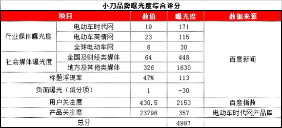 在本期榜單中,小刀排名第五。據新聞數據統計顯示,雖然小刀電動車在整個第三季度的傳播總量并不多,但最終仍然突破了400大關,也為其進軍行業第五奠定了堅實基礎,昭示出其強大的品牌潛力。