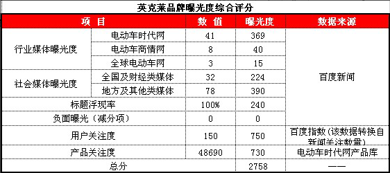 從本期的調查數據來看,英克萊的綜合實力提升明顯,尤其是在媒體曝光率方面,社會媒體的曝光度的參數已超過600關口,令人矚目。另外,100%的標題浮現率,在各品牌中也顯得非常突出,這對英克萊躋身榜單第十的位置功不可沒。據統計數據顯示,英克萊零負面的成績也顯得難能可貴。