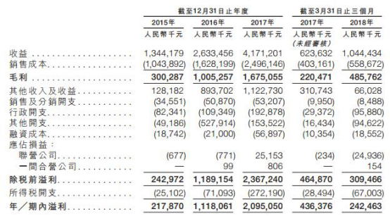 此次在港交所披露的招股書顯示,2015年、2016年、2017年和今年一季度,贛鋒鋰業的營業收入分別為人民幣13.44億元、26.33億元、41.71億元和10.44億元,公司純利分別為2.18億元、11.18億元、20.95億元和2.42億元。