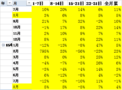 從進度走勢看,15年7月的前兩周的下滑較大,體現了股市的影響較大。8月的走勢已經平穩,處于平穩的低迷狀態。