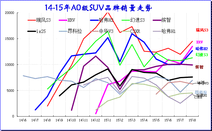 15年的微轎車型銷量下滑較大,8月主力車型除了奔奔外全面同比大幅下滑40%左右,市場壓力較大。奔奔出現銷量同比增長,這也是微轎中少有的強勢增量車