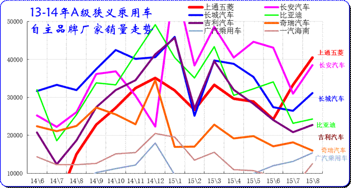 圖表 32自主品牌主力廠家緊湊型狹義乘用車市場(chǎng)走勢(shì)