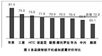 目前,我國智能手機(jī)在用戶體驗(yàn)、感知方面與用戶預(yù)期存在差距,用戶滿意度水平整體偏低,不同品牌之間差異較大。