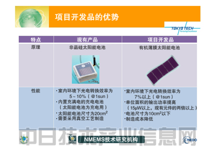 此次的開發(fā)目標(biāo)是輸出功率達(dá)到現(xiàn)有太陽能電池的兩倍以上,即150μW以上,轉(zhuǎn)換效率達(dá)到7%以上。電池尺寸為10cm2以下(圖4)。