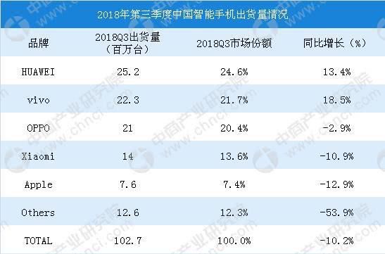 這一數據和全球IDC公司的最新數據相吻合。IDC公司的統計顯示,2018 年第三季度全球智能手機出貨 3.552 億臺,同比下降 6%,連續四個季度下滑,我國智能手機出貨 1.027 億臺,同比下降 10.02%,連續六個季度下滑。