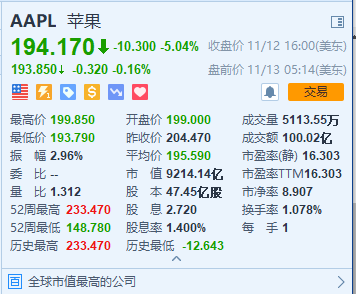 12日晚間,蘋果股價大跌5%,市值就蒸發了489.25億美元(約合3409億元人民幣)。這個規模已經1.3個小米的市值了(2990億港幣)。更慘烈的是,十月份以來,蘋果市值直線下跌,最大跌幅已達16.5%,累計蒸發了近2000億美金。