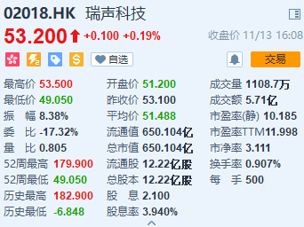 在今天港股開盤后,蘋果產業鏈公司瑞聲科技和舜宇光學科技分別大跌7.44%和4.17%,瑞聲科技的股價也跌破50港元,創3年來低點。但截至收盤,兩家公司止跌反漲,漲幅分別為0.19%和2.85%。