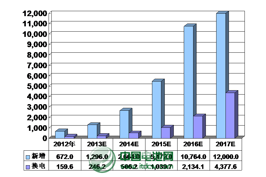 ④ 換電模式同樣會(huì)成為中國發(fā)展電動(dòng)自行車的重要選項(xiàng)之一,預(yù)計(jì)到2017年中國電動(dòng)三輪車換電市場所需的鋰離子電池將高達(dá)4,377.6 MWh。