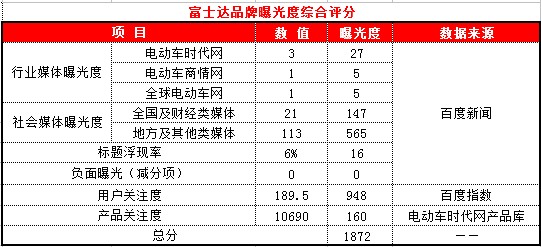 從統計數據來看,富士達在本期榜單中用戶關注度方面的表現也比較出色,曝光度接近1000點。另外,在電動車時代網產品庫數據中富士達的關注度也突破了10000分,綜合表現十分突出。