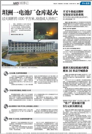 前晚,坦洲鎮第三工業區天貿電池廠一棟四層樓倉庫突發火災,大火燒了4個多小時才被控制。坦洲鎮政府通報稱,事發工廠起火面積約1000 平方米,沒有造成人員傷亡,具體損失和事故原因仍在調查中。
