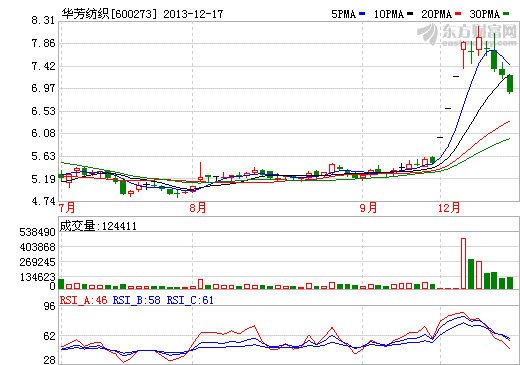 12月3日,華芳紡織公告稱,爭(zhēng)取在2013年12月26日之前披露重組預(yù)案或報(bào)告書(shū),但公司卻于次日便公布了預(yù)案。受此影響,華芳紡織股票開(kāi)盤(pán)后連續(xù)4個(gè)交易日漲停,而市場(chǎng)預(yù)期則在于華芳紡織將在置出所有資產(chǎn)和負(fù)債的同時(shí),還將注入具有盈利能力的浙江嘉化能源化工股份有限公司(以下簡(jiǎn)稱,嘉化能源)100%股權(quán)。