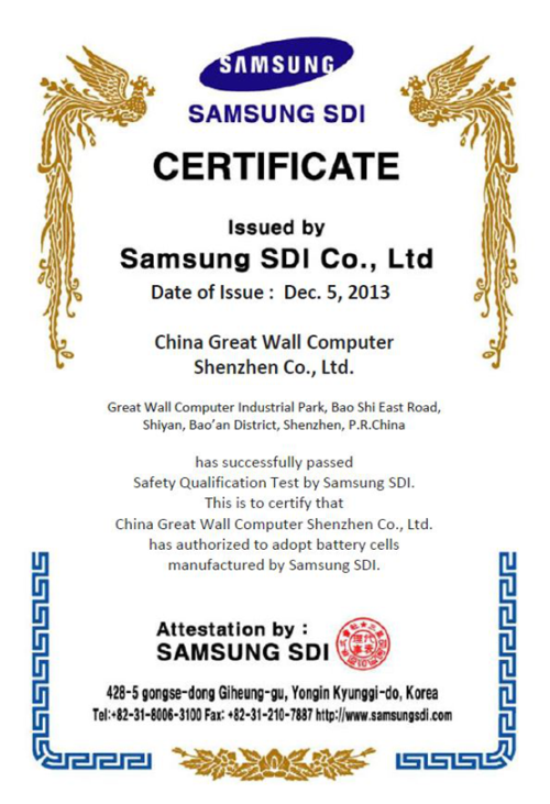 長城移動電源經過不斷努力和自身品質的提升,最近獲得了由三星SDI頒發的SAMSUNG SDI的CET認證證書。這意味著,長城移動電源旗下產品都是100%的三星電芯。同時,長城移動電源還可以獲得三星SDI提供的產品、技術、認證和服務支持。這樣一來,消費者購買長城的移動電源產品時,更有保障。