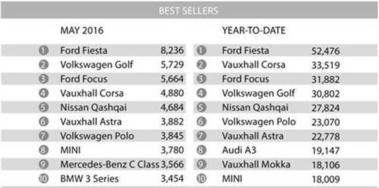 英國車市上月暢銷車型榜單中,福特嘉年華(Fiesta)銷量排行第一,達8,236輛;大眾高爾夫銷量為5,729輛,位列第二;福特福克斯緊隨其后,銷量達5,664輛,位居第三。